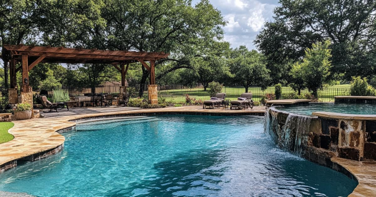 Consider incorporating shade elements such as pergolas, cabanas, or natural shade from strategically planted trees to combat the Texas heat. Poolside seating areas under a shaded structure can provide a cool retreat when you’re not swimming.